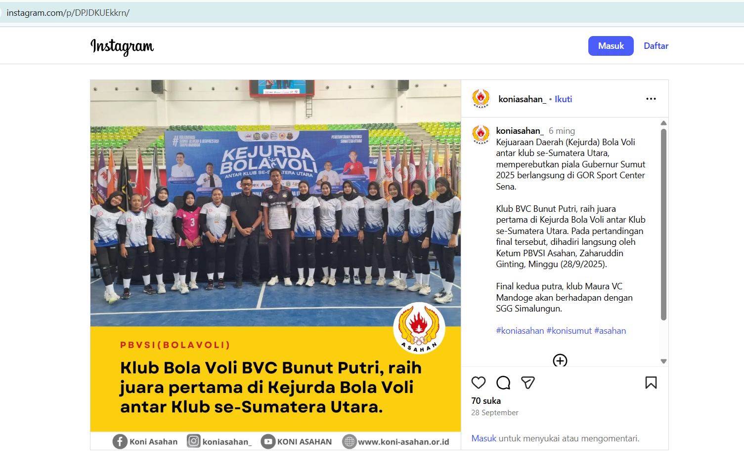 Penyelenggara: PBVSI Sumatera Utara