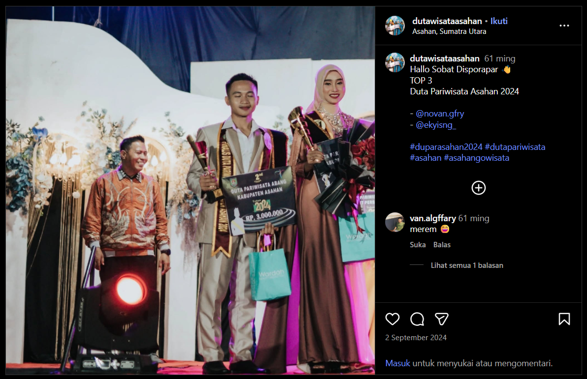 Pemilihan Duta Pariwisata Asahan pada Pemilihan Duta Pariwisata Kabupaten Asahan Tahun 2024