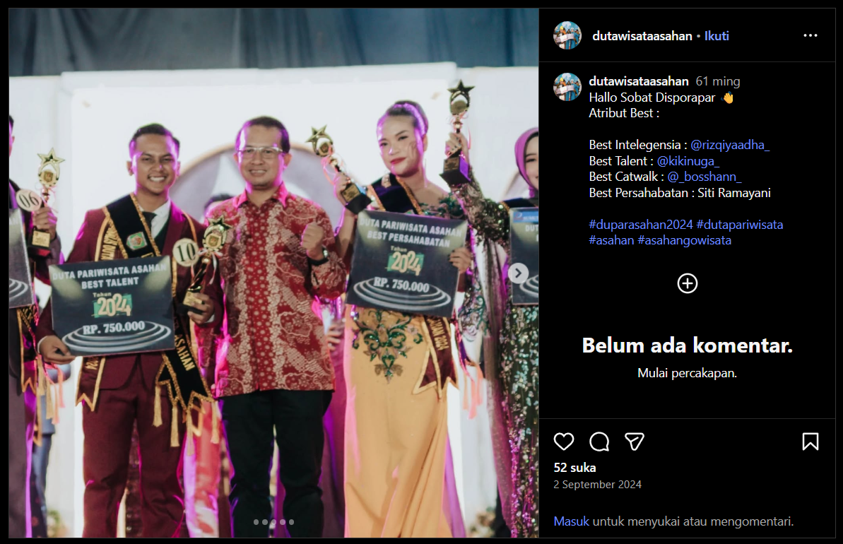 Pemilihan Duta Pariwisata Asahan pada Pemilihan Duta Pariwisata Kabupaten Asahan Tahun 2024